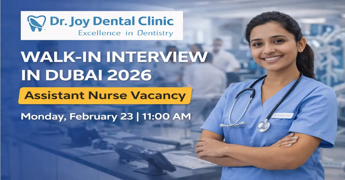 The Dr. Joy Dental Clinic Walk-In Interview 2026 offers a valuable opportunity for Assistant Nurses seeking employment in Dubai’s competitive healthcare sector. With its strong reputation, multiple branches, and commitment to excellence, Dr. Joy Dental Clinic provides a stable and growth-oriented career path.