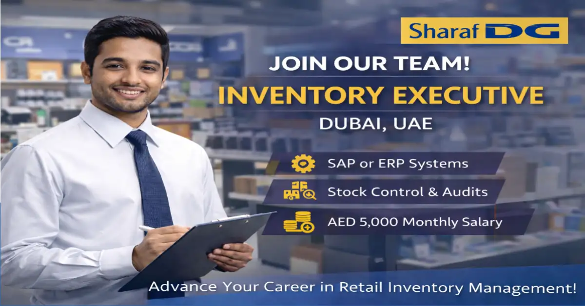 If you are looking for a stable retail career in the UAE, the latest opportunity announced by Sharaf DG could be a strong option to consider. The company is currently hiring an Inventory Executive in Dubai, a role that plays a critical part in ensuring smooth retail operations. Inventory positions are among the most important jobs in large retail chains because product availability, sales performance, and customer satisfaction all depend on accurate stock management. This vacancy is especially suitable for candidates with retail store, warehouse, or supply-chain experience who want to grow inside a well-established electronics retail brand in the Middle East.